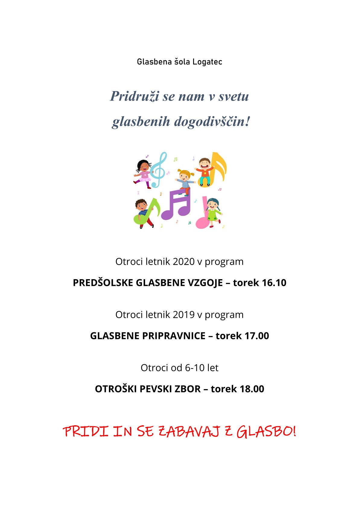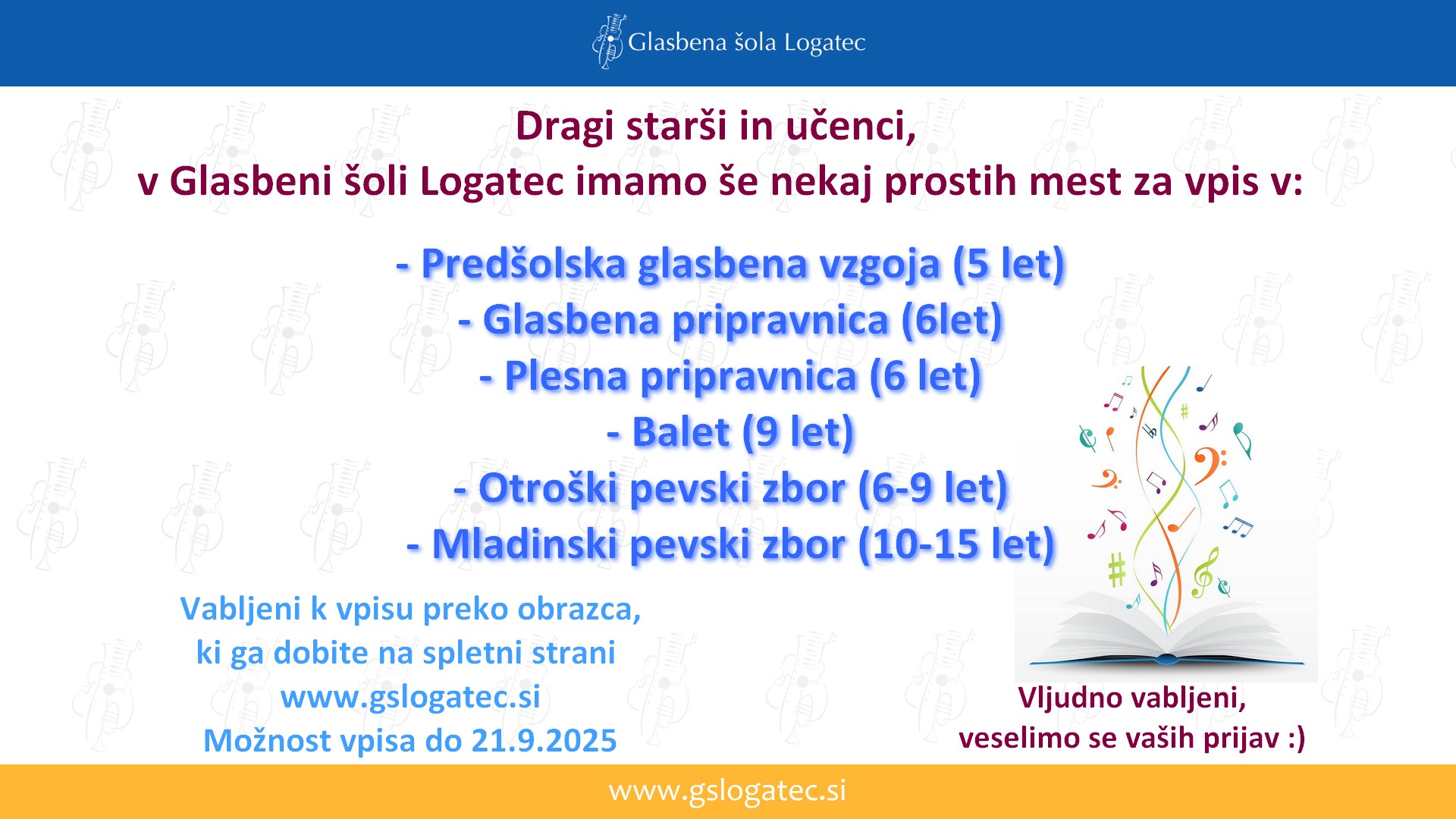 Prosta mesta v GŠ Logatec 26. Avgust 2025 Več na povezavi: https://www.eglasbenasola.si/vpis/12 Nazaj na seznam novic